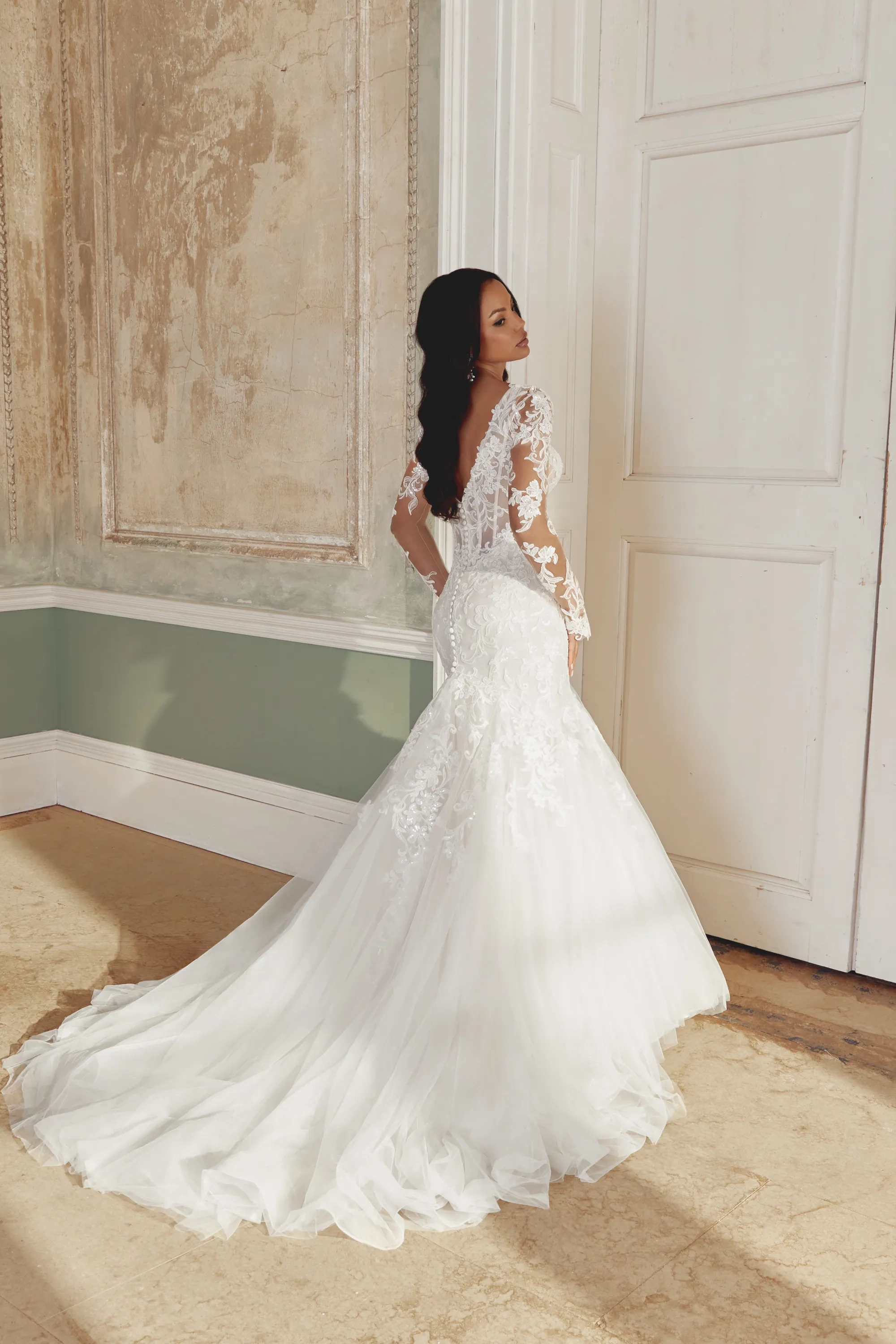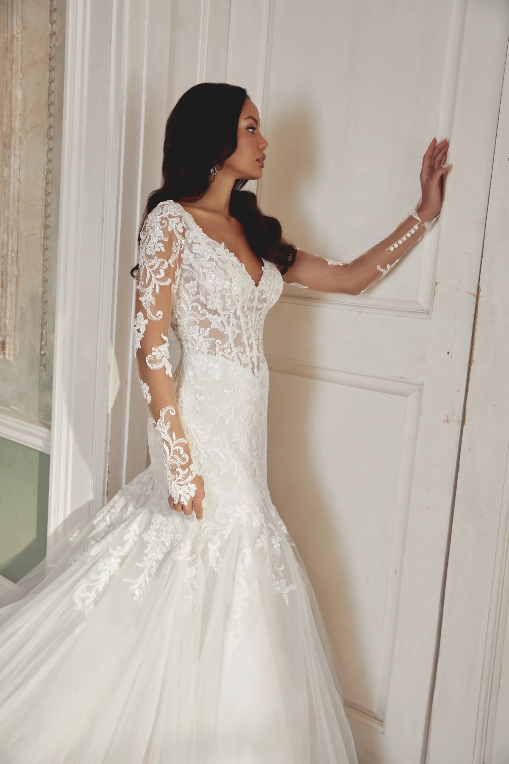 Fabric:3D Sequined Flowers, Jersey Lining, Tulle