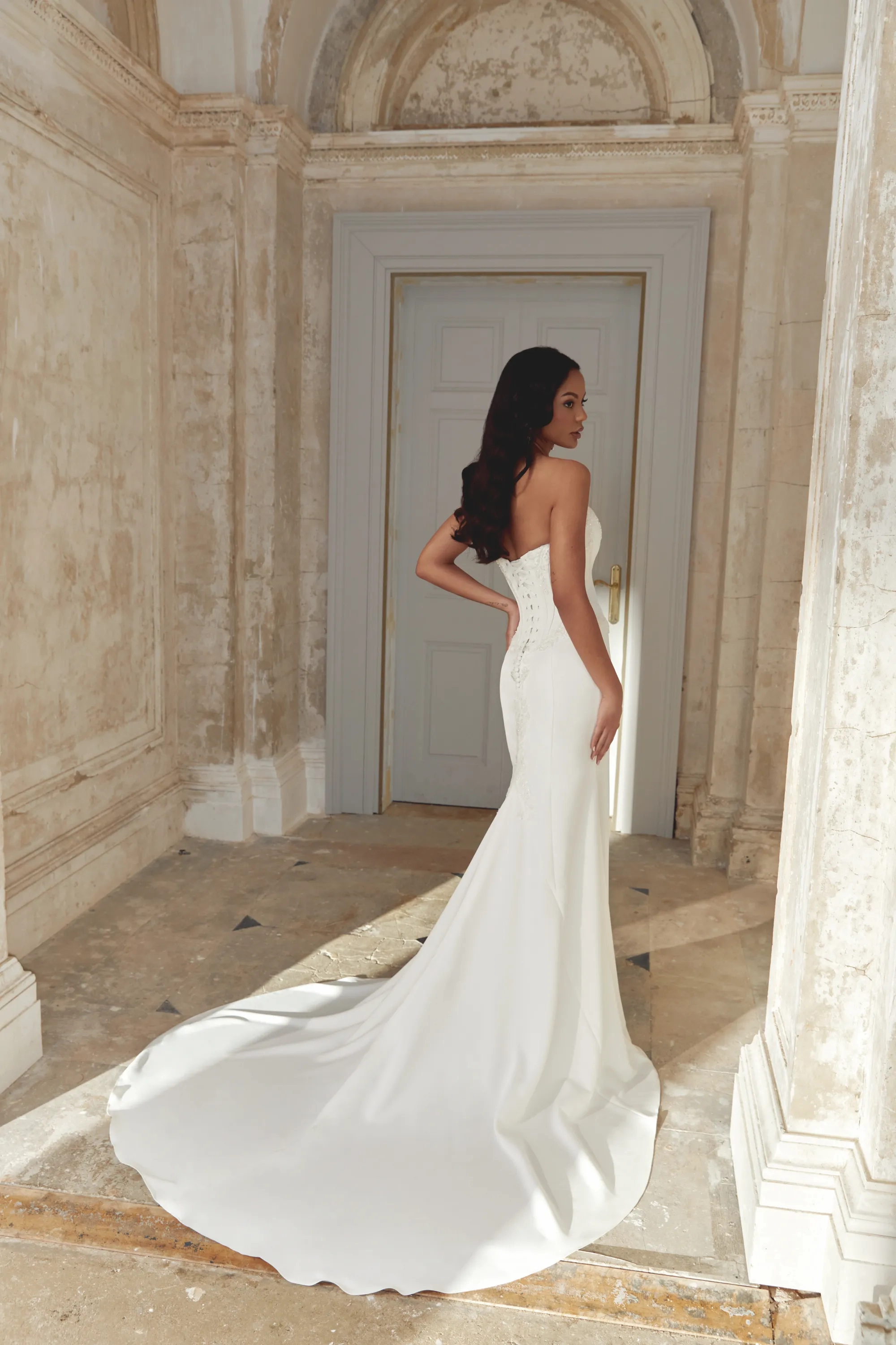 Fabric:Beaded and Sequined Lace Appliques, Jersey Lining, Satin