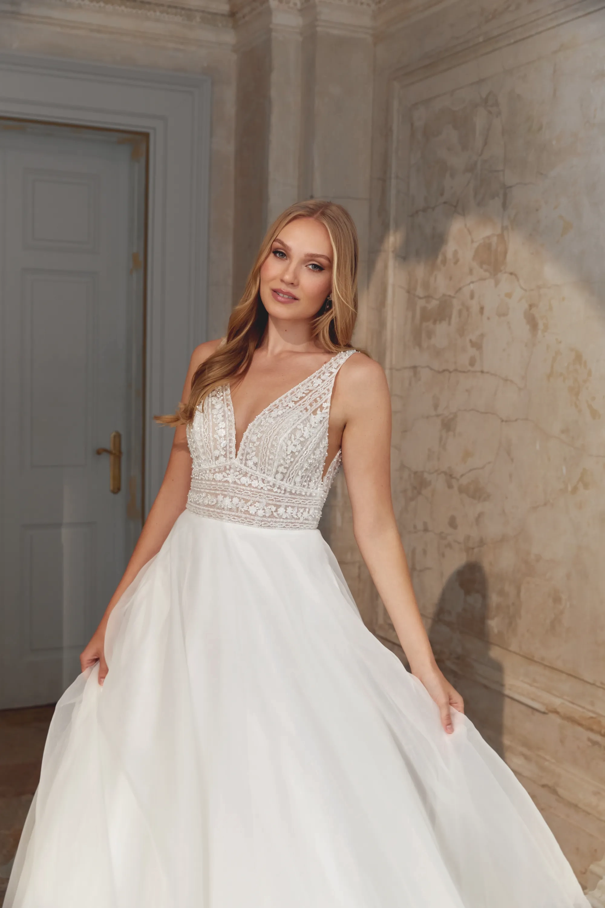 Fabric:Beaded Embroidery, Organdy, Patterned Glitter Tulle, Tulle