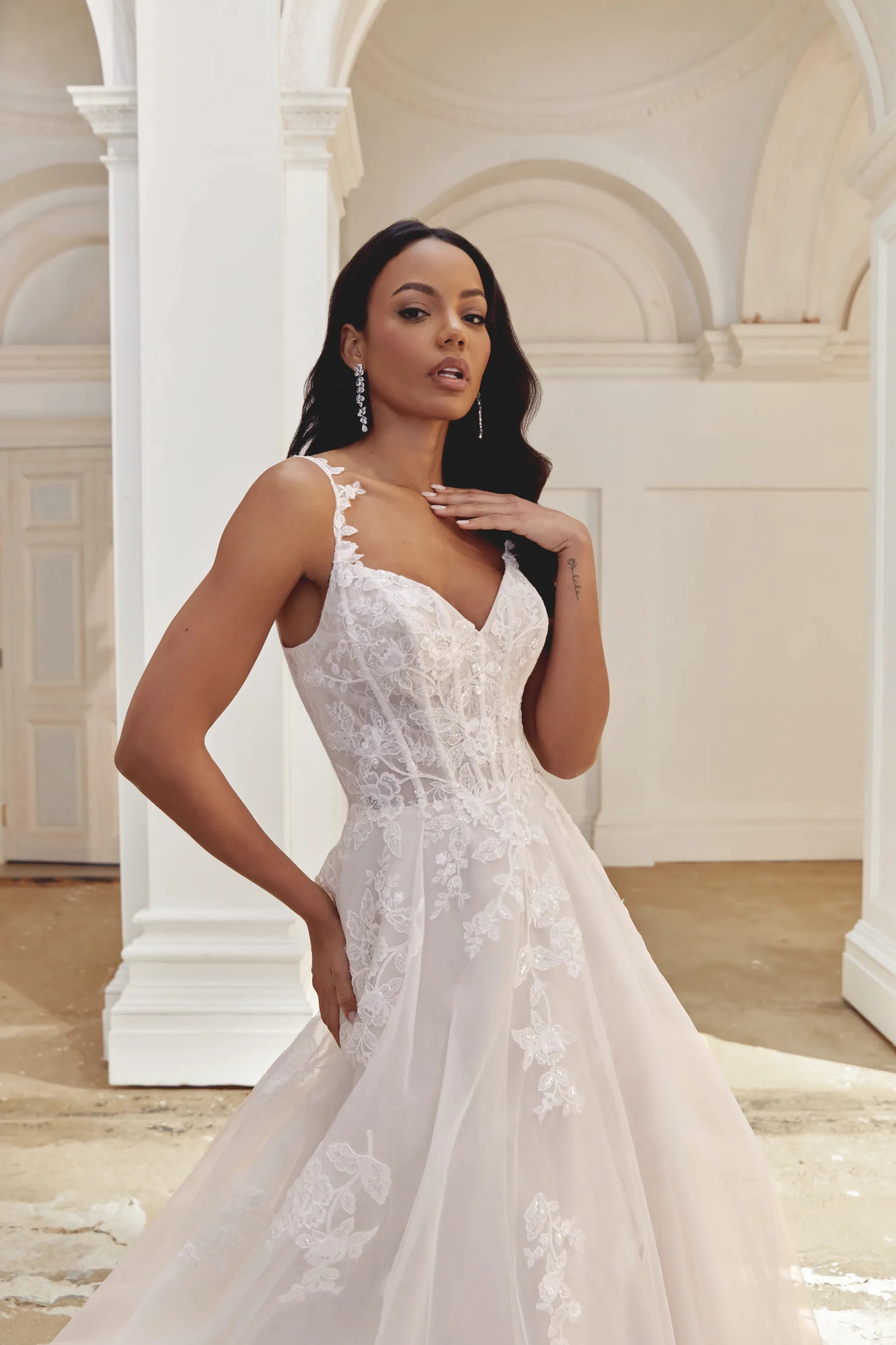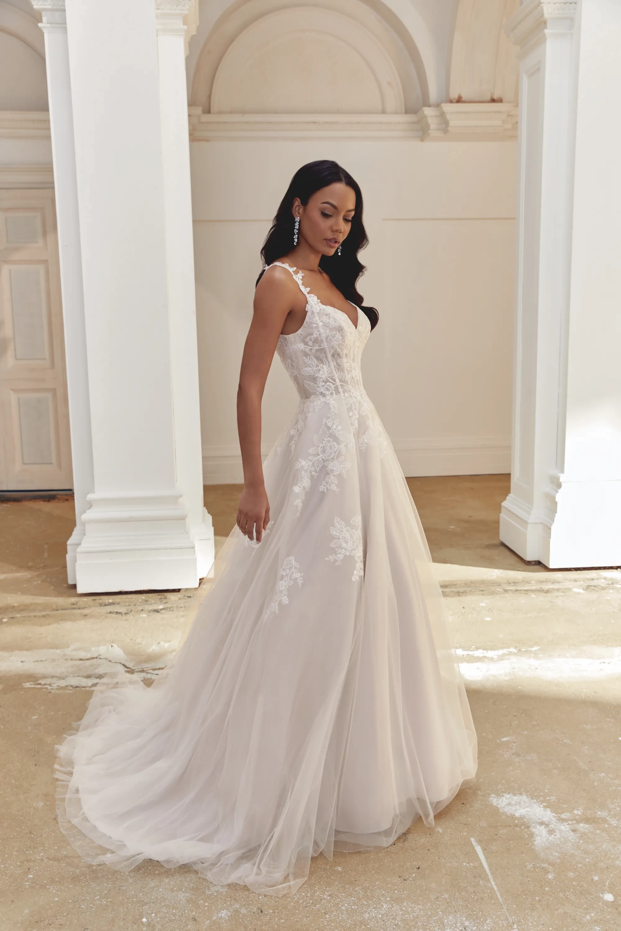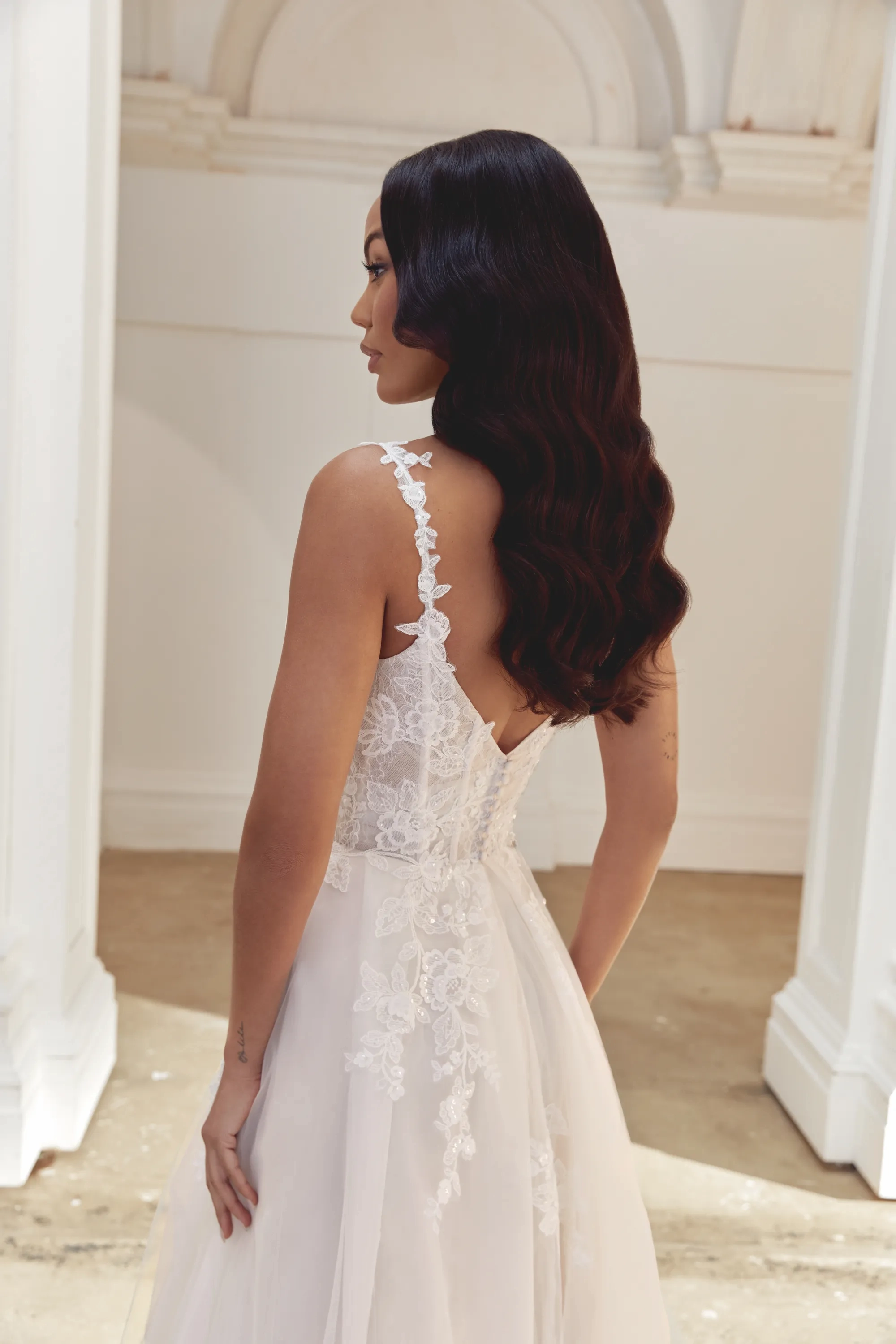 Fabric:Chantilly Lace, Sequined Lace Appliques, Tulle