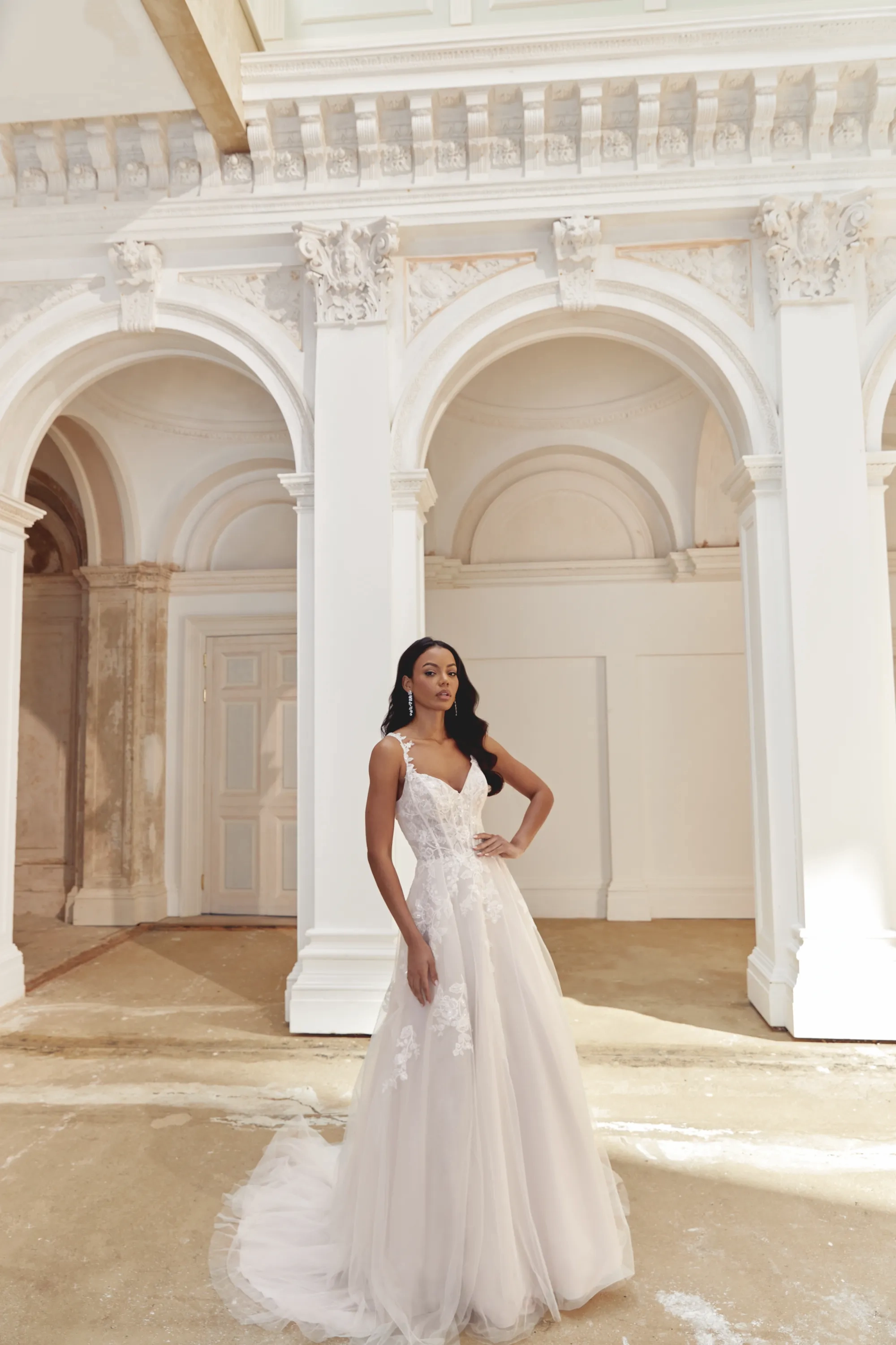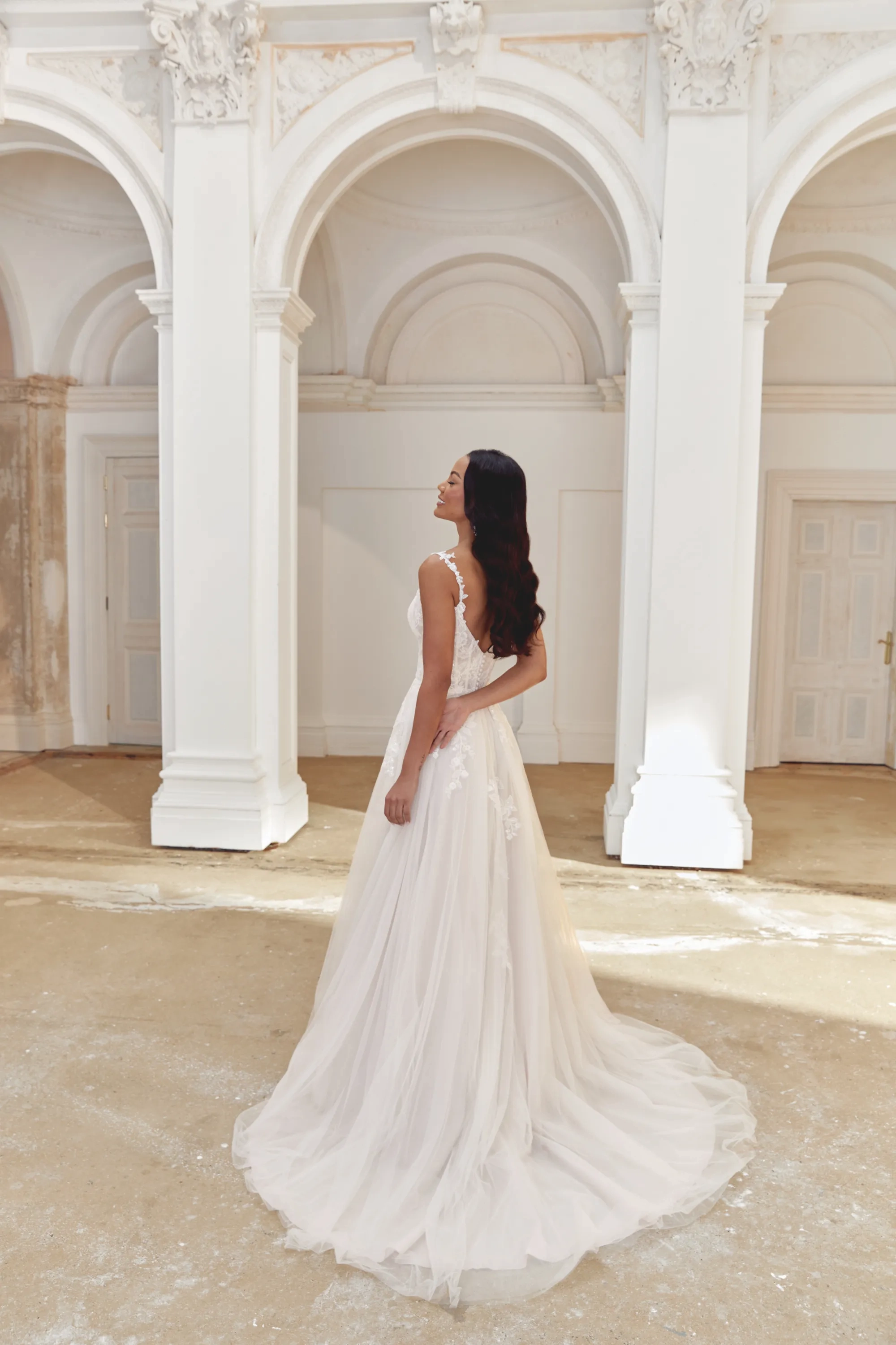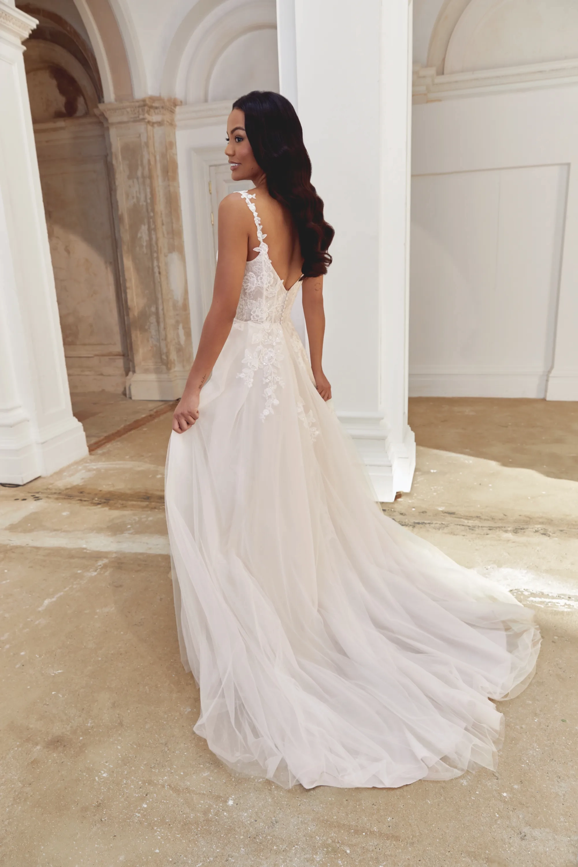 Fabric:Chantilly Lace, Sequined Lace Appliques, Tulle