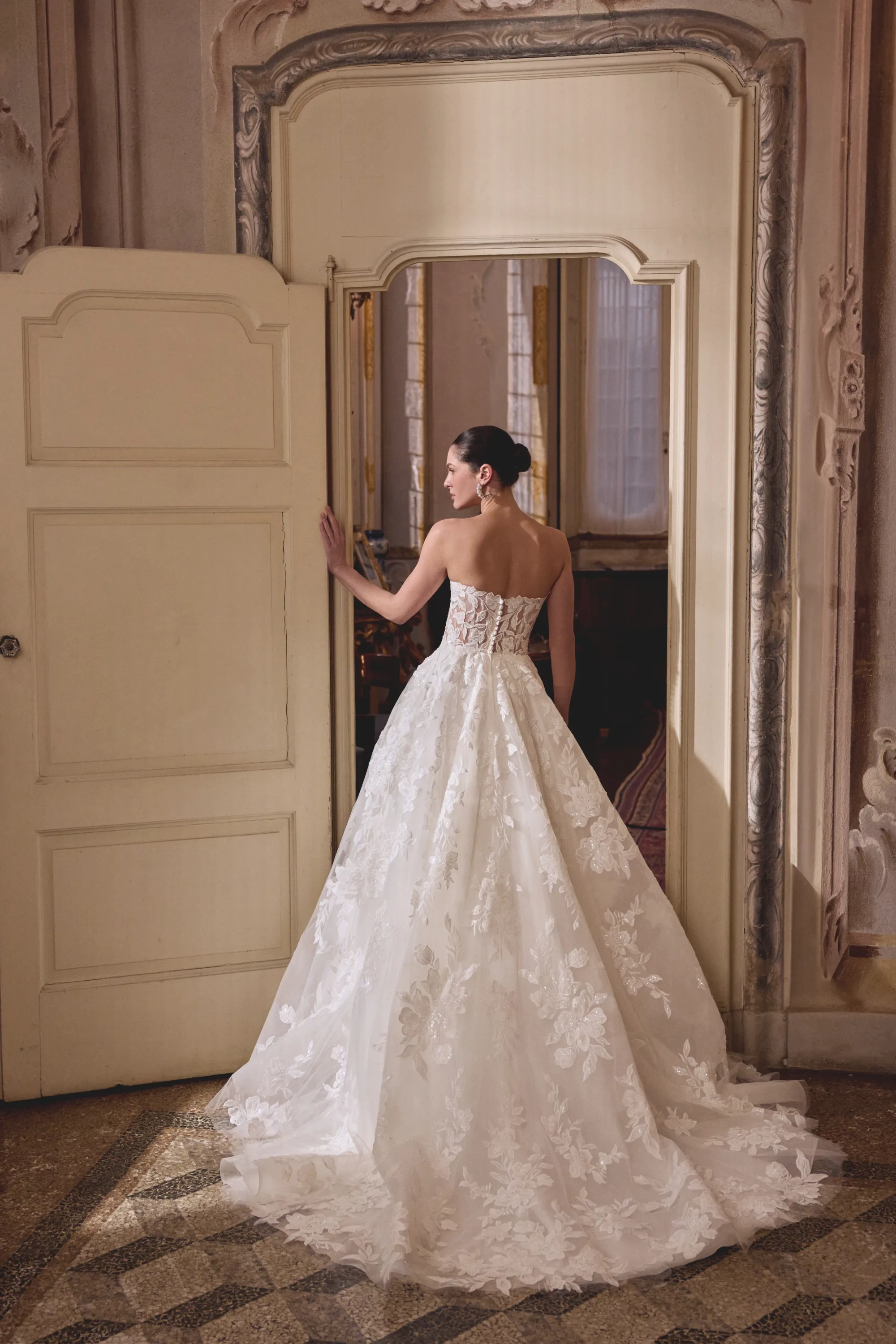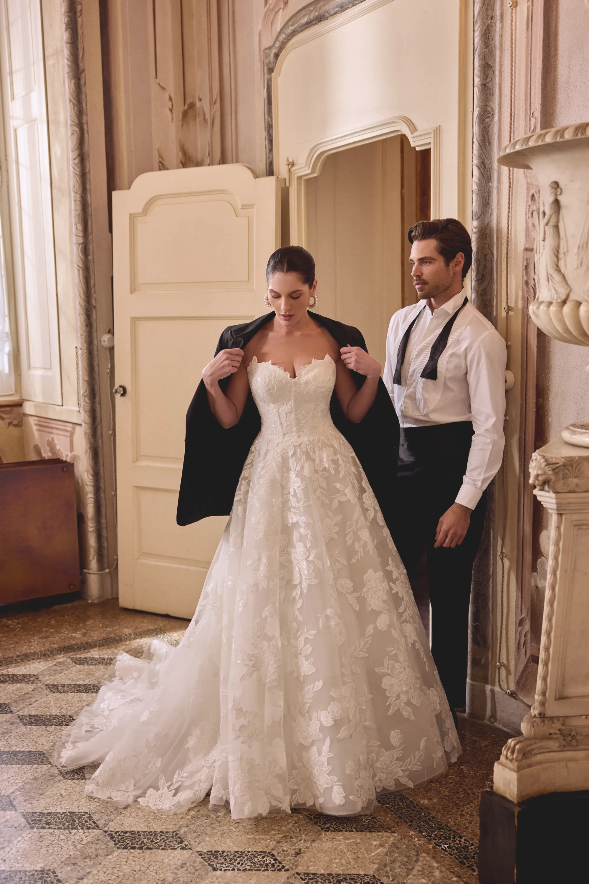Fabric:Satin, Sequined Lace Appliques, Tulle