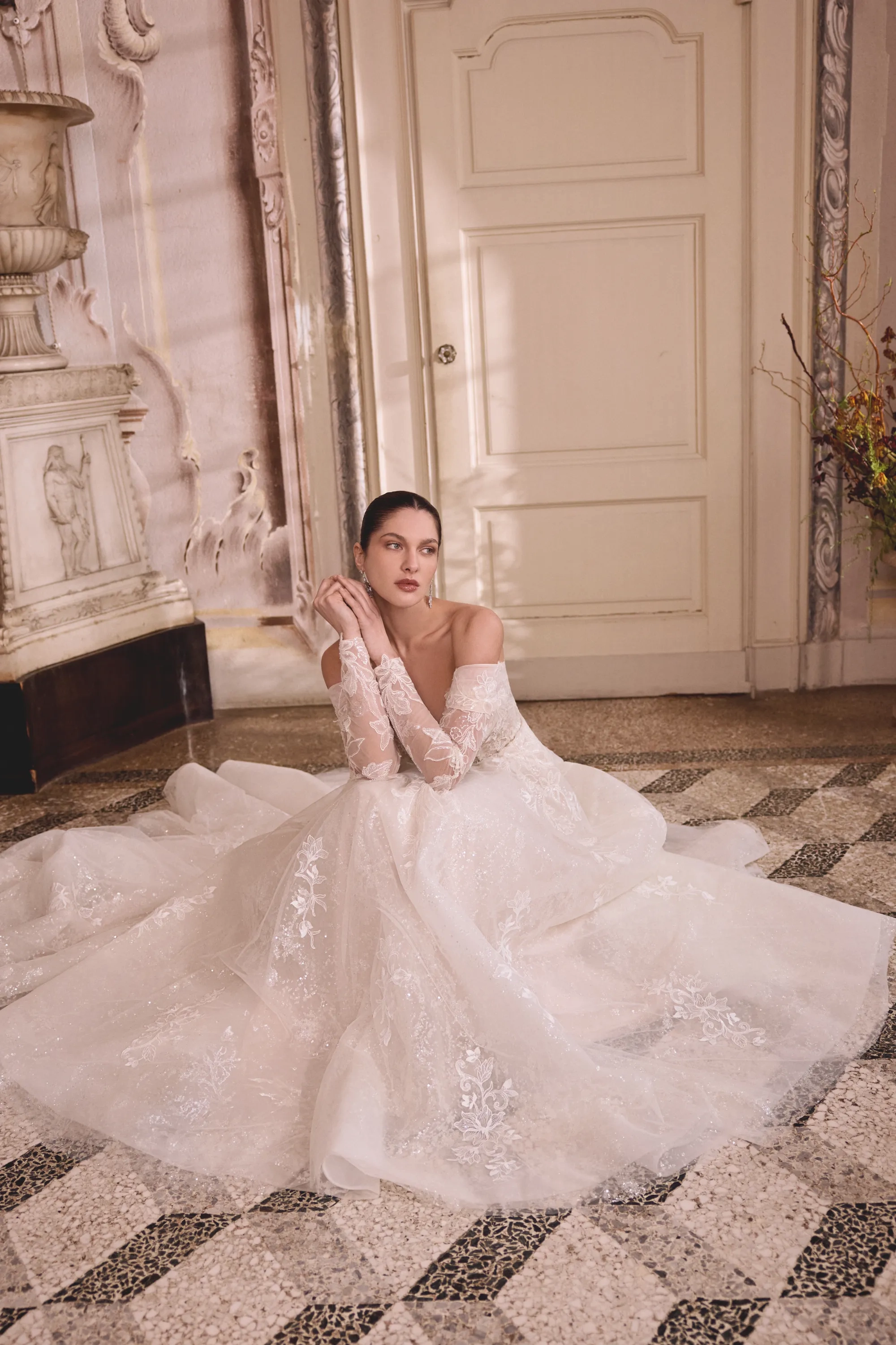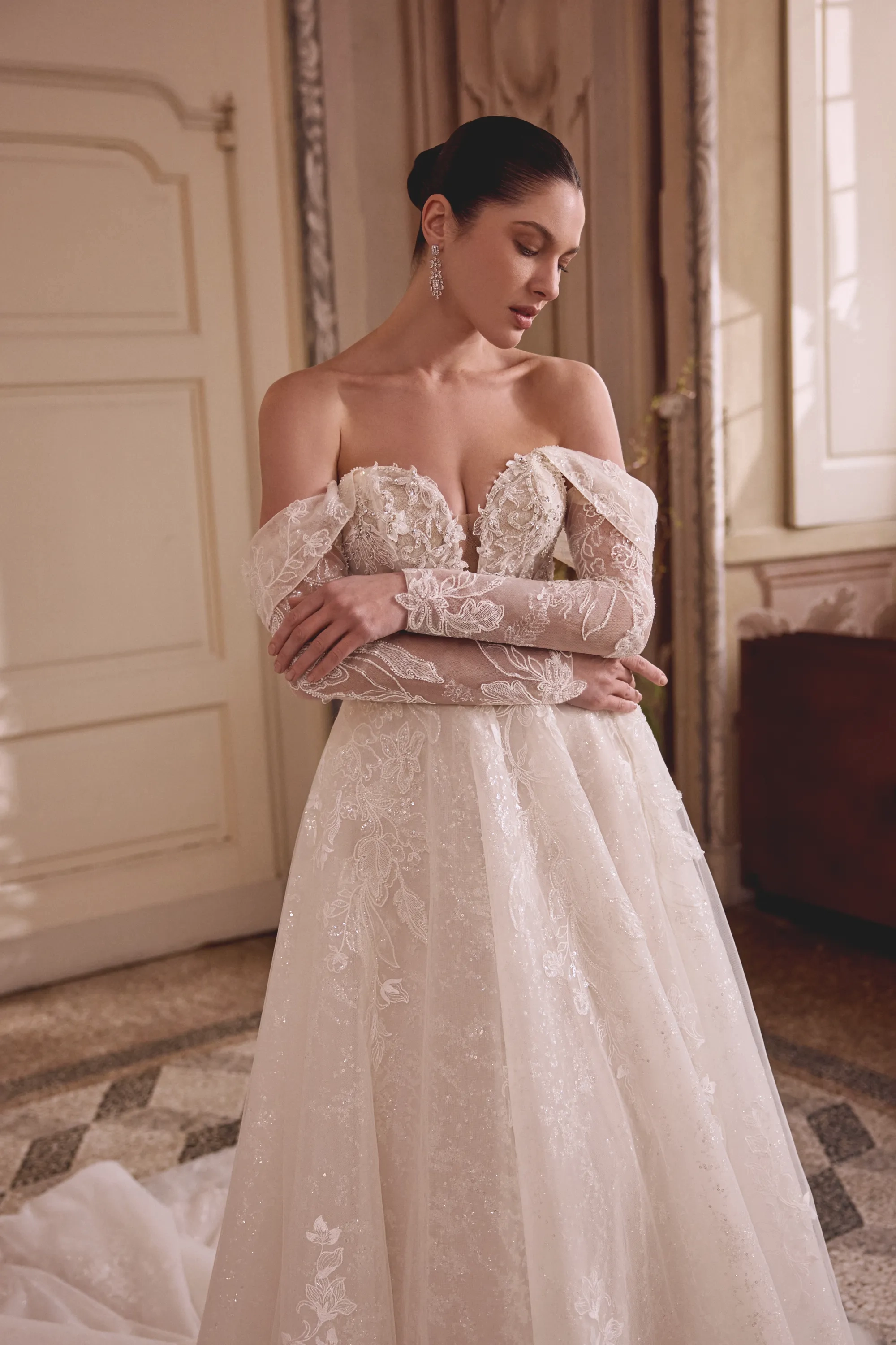 Fabric:Beaded and Sequined Lace Appliques, Crystal Embroidery, Glitter Tulle, Tulle