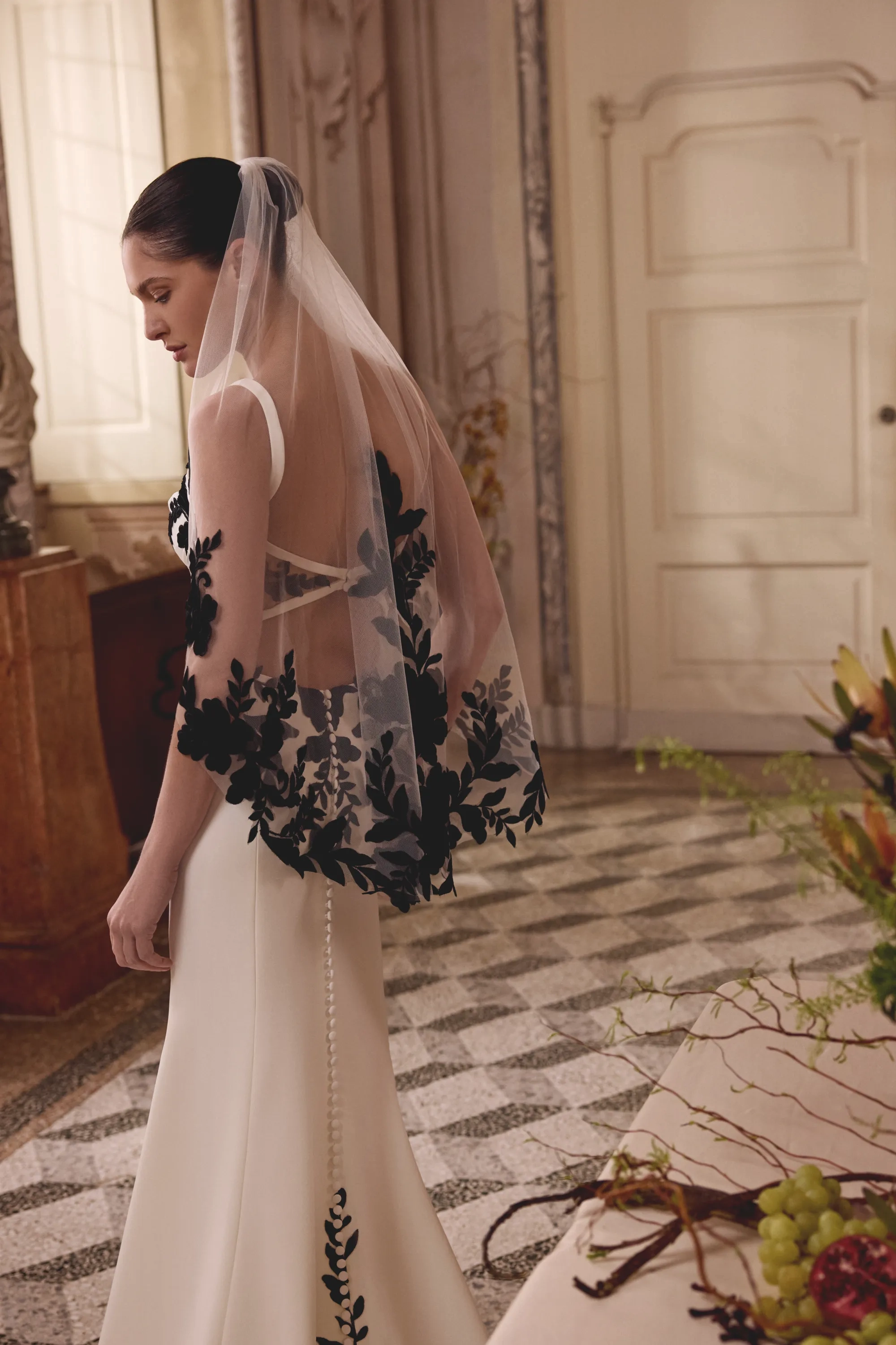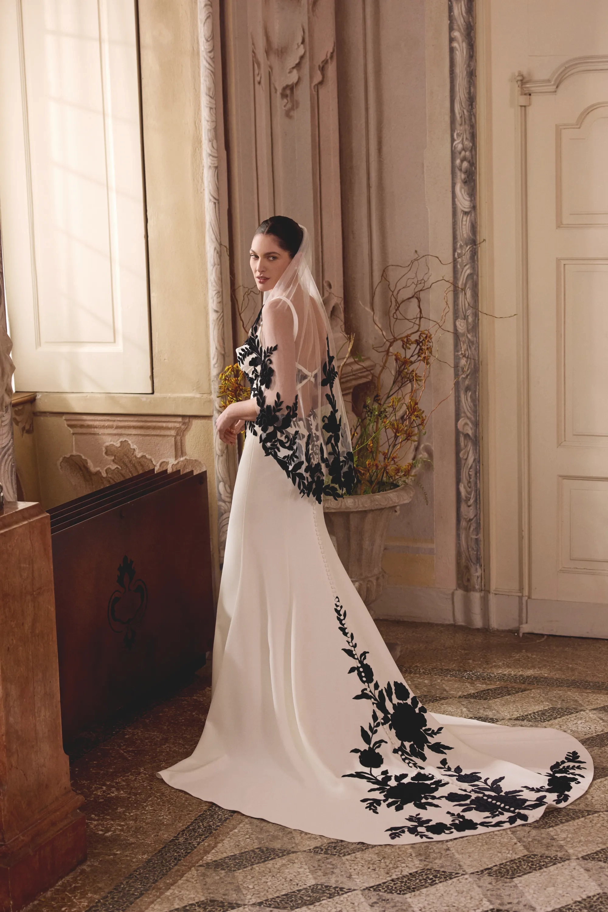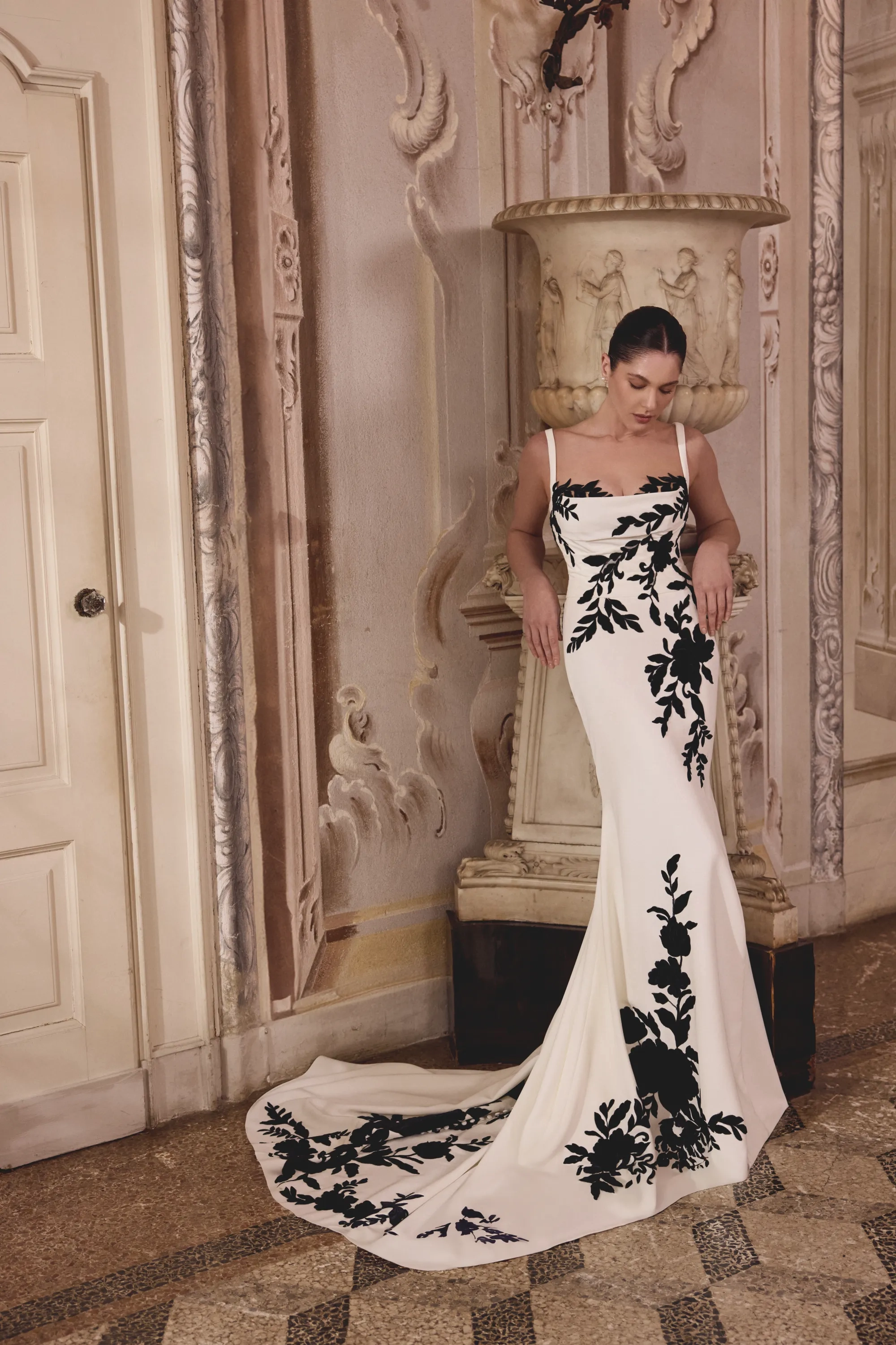 Fabric:Jersey Lining, Stretch Crepe, Tulle, Velvet Appliques