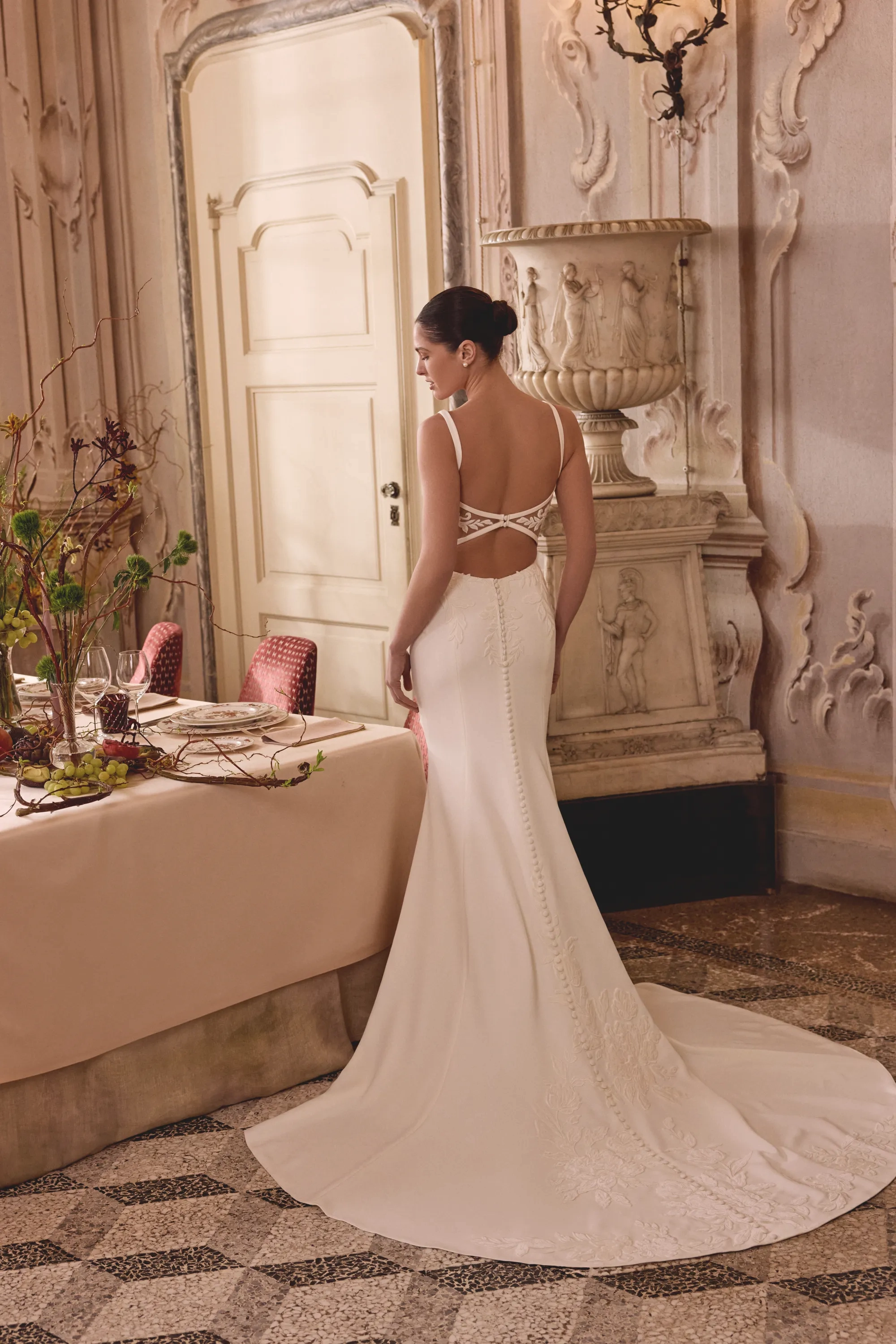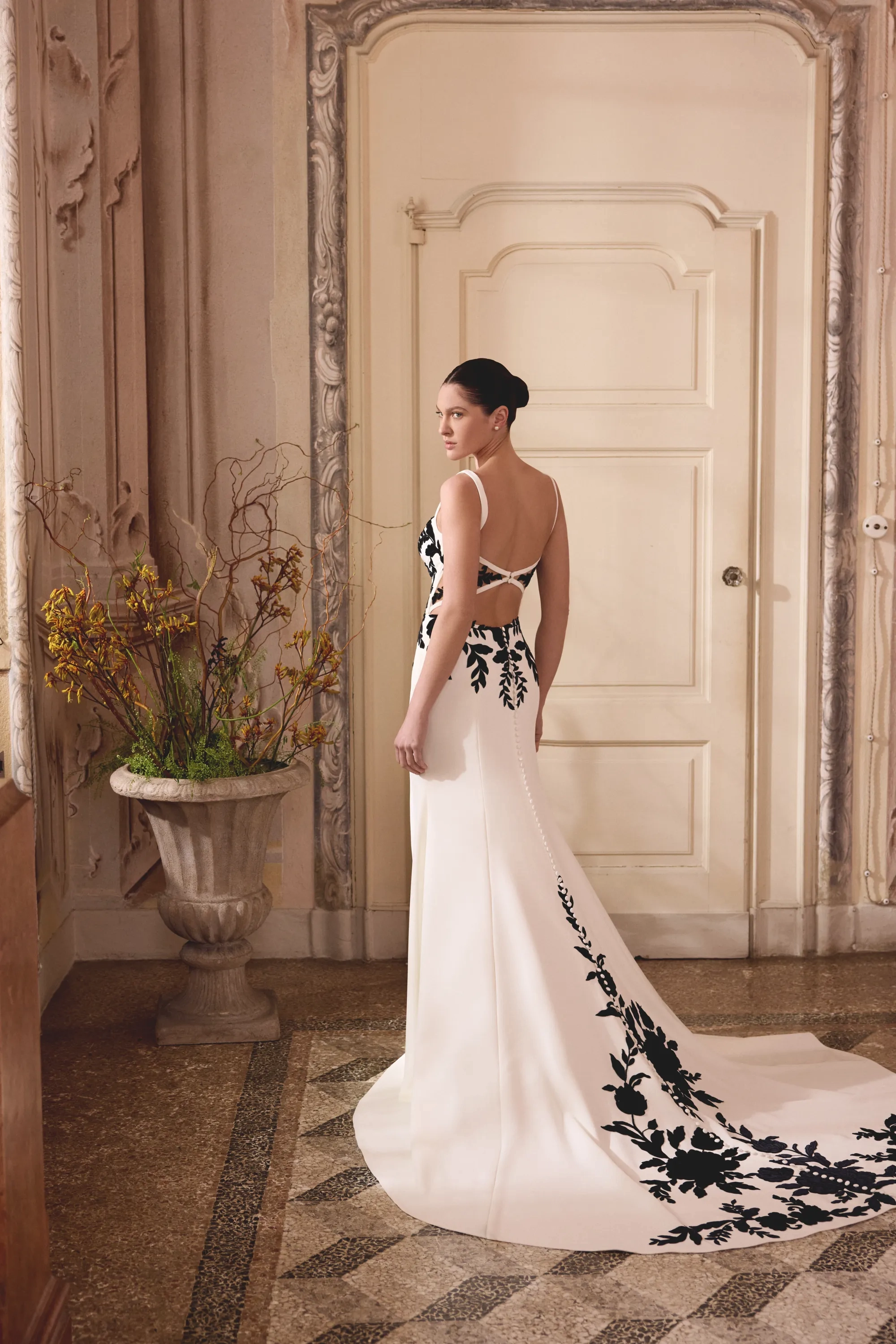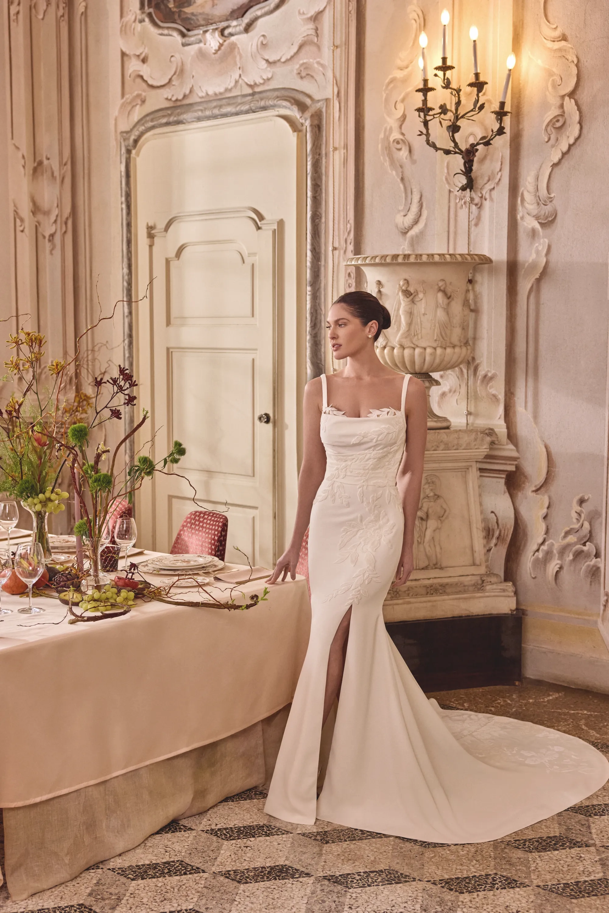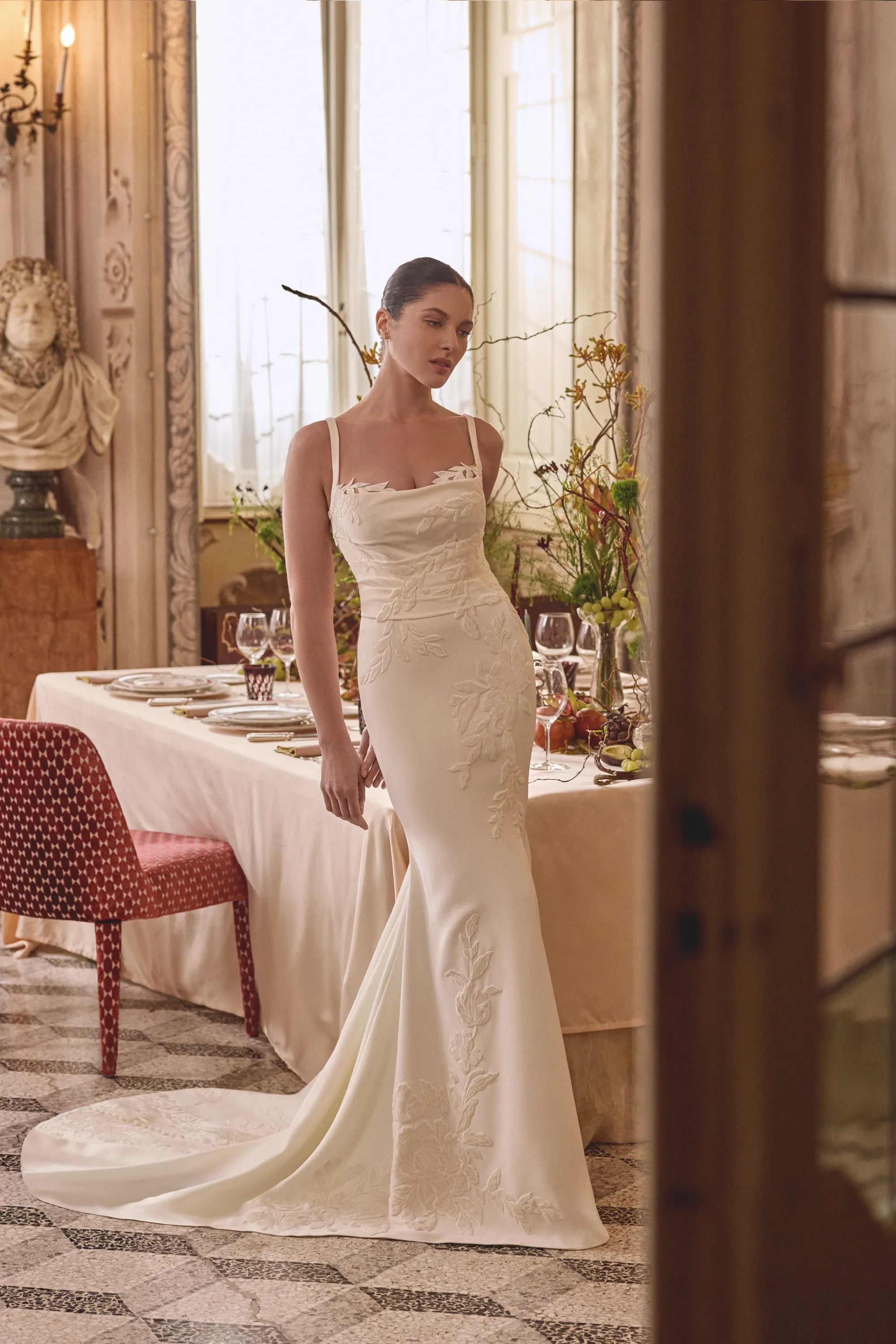 Fabric:Jersey Lining, Stretch Crepe, Tulle, Velvet Appliques